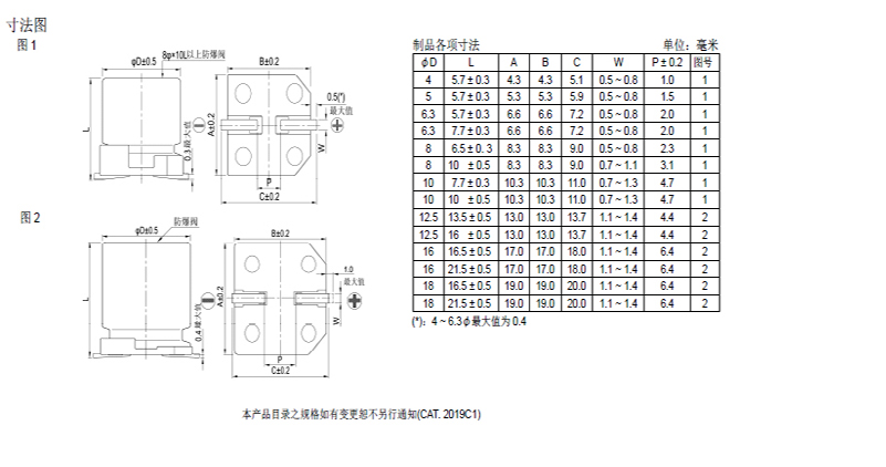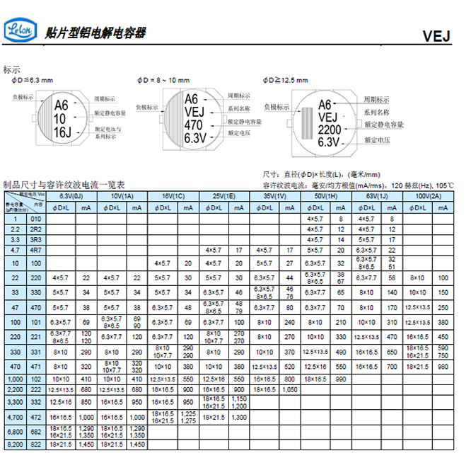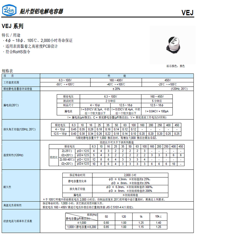 ?4φ ~ 18φ, 105℃、2,000小時(shí)壽命保證