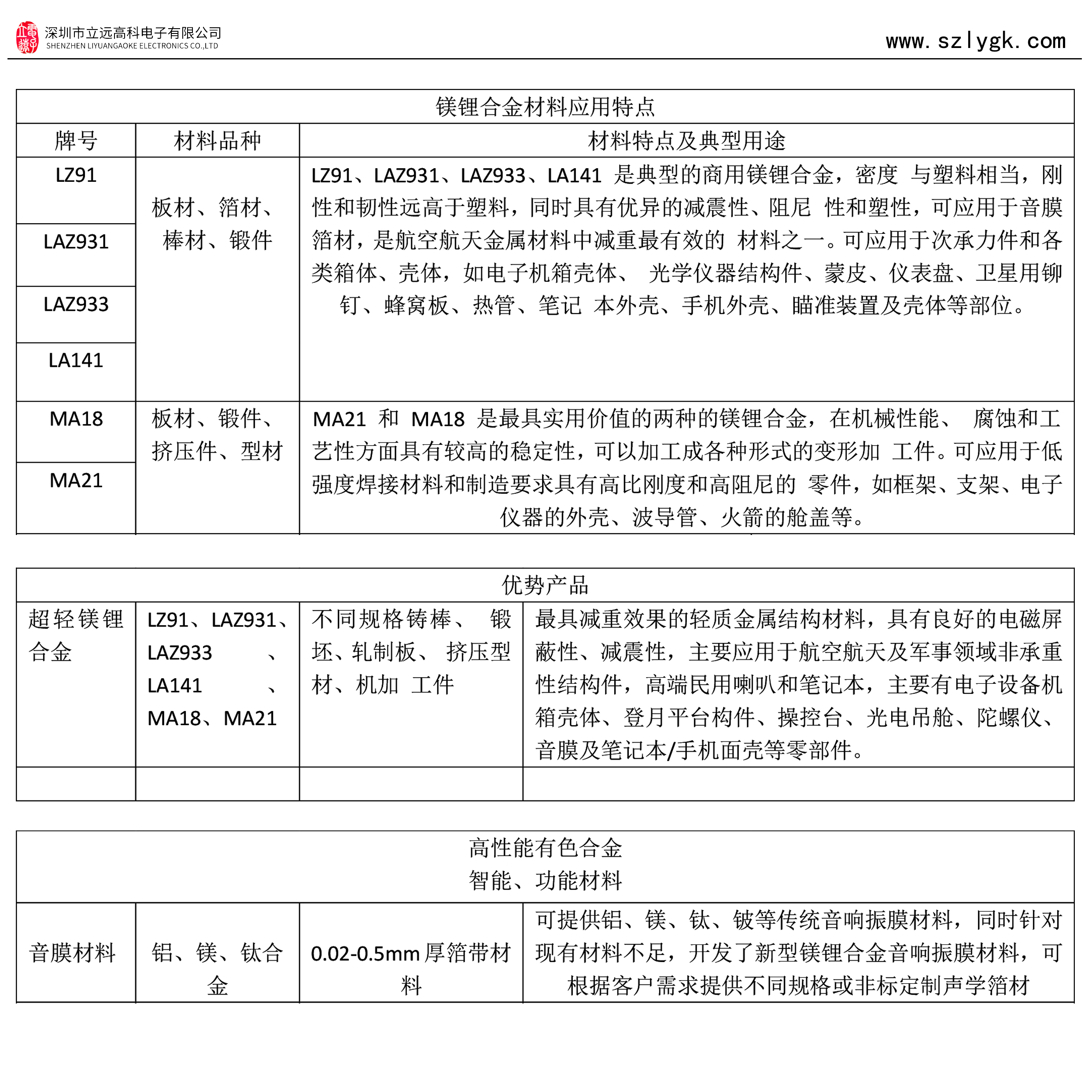 • 音膜材料 LZ91